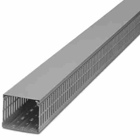 Canaleta, cinza, composta de peça superior e inferior, largura: 40 mm, altura: 60 mm, comprimento 2.000 mm.